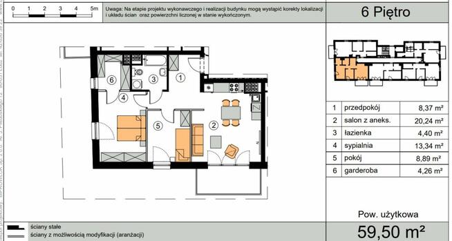 Na sprzedaż przestronne mieszkanie o powierzchni 59,50 m² w stanie deweloperskim, położone na 6. piętrze nowoczesnego ...